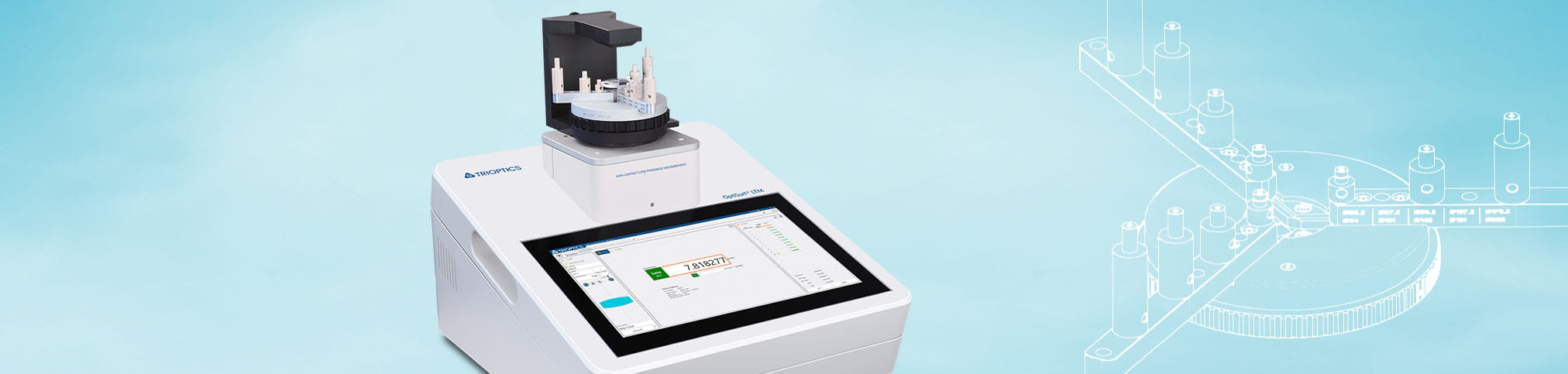 In optics production, the high quality of the single lens is the prerequisite for high-precision optical systems. With the OptiSurf® LTM (Lens Thickness Measurement), TRIOPTICS offers a precise center thickness measurement system for single lenses and doublets that seamlessly integrates into any production process. The high precision low-coherence interferometry is based on the established OptiSurf® technology and measures single lenses and doubles with a glass thickness of up to 150 mm with a precision of ±0,5 µm. The non-contact measurement system is gentle on sensitive surfaces and coatings. In addition to the center thickness, the sag value can also be determined.